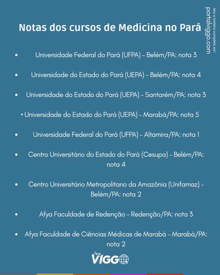 Notas dos cursos de Medicina no Pará